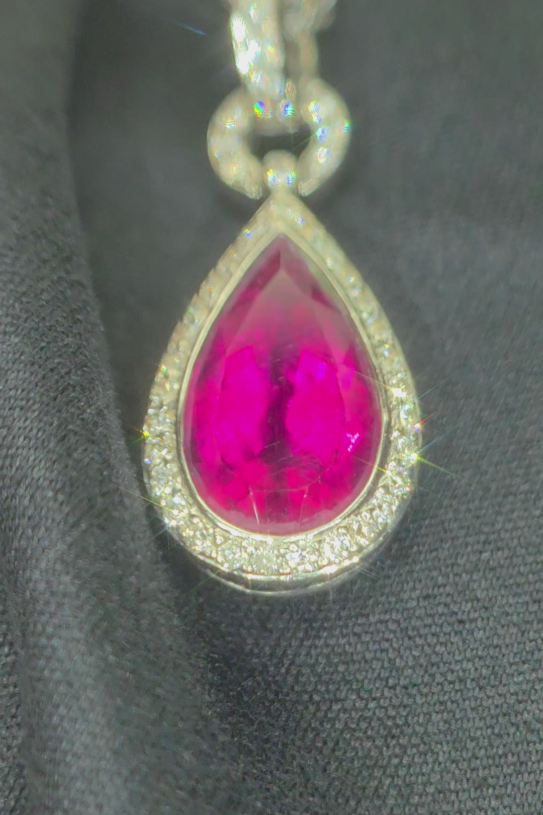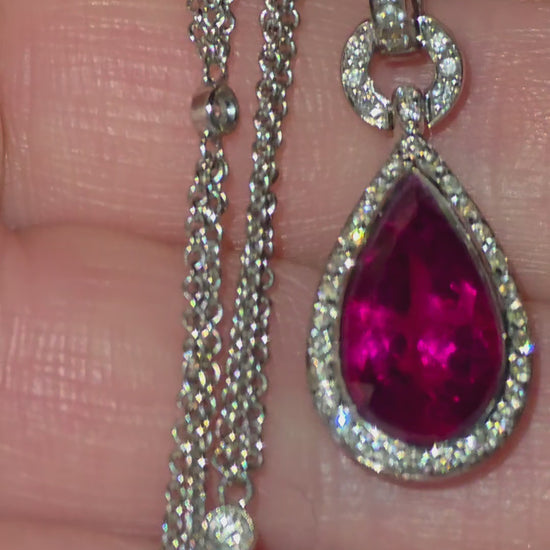 18ct, White Gold, 4.2ct Rubellite Tourmaline & 1.09ct Diamond Necklace.Ā