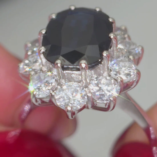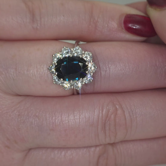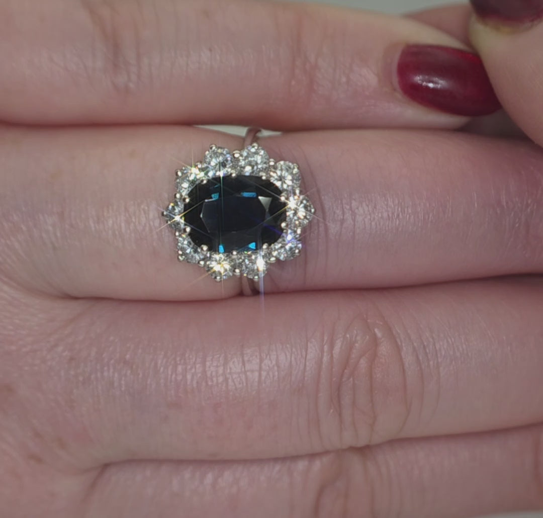 18ct White Gold, 2.95ct Magmatic Sapphire & 1.4ct SI1-SI2 Diamond Ring. Size L.