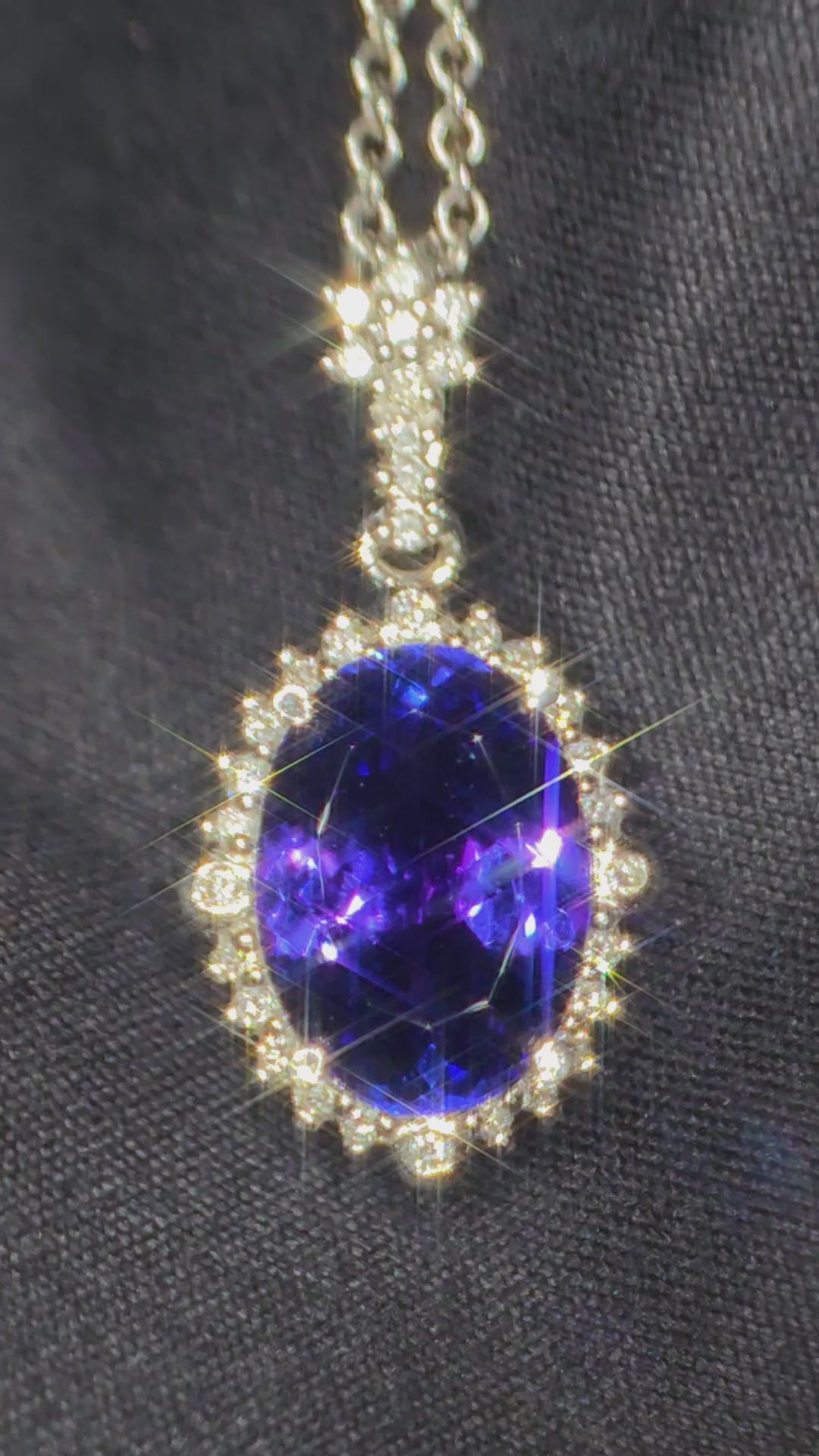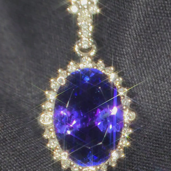 18ct White Gold, 5.3ct, Eye Clean Tanzanite Pendant With 1.2cts VS1-2 Diamonds. WGI certified.