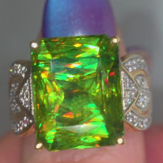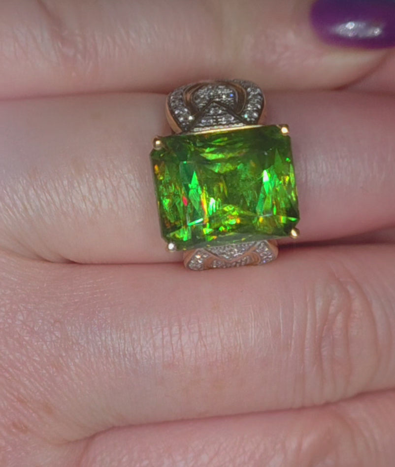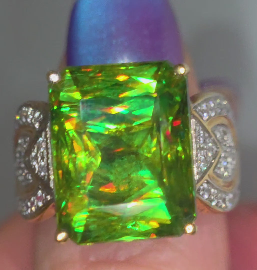 This really is Christmas personified. Sphene has a higher dispersion rating than a diamond, which creates intense red, green, and orange flashes that look exactly like Christmas tree lights. Whilst a diamond reflects more white light, Sphene splits that light into a far more vivid spectrum of color.